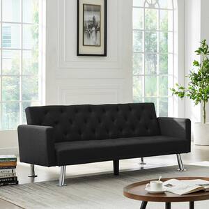 Spaco 72 83 In Black Fabric Convertible Folding Futon Twin Sofa Bed For Compact Living Space With Adjustable Back Mb W58833782 The Home Depot